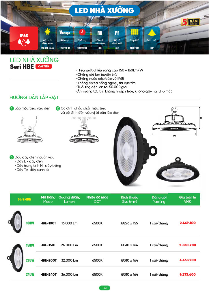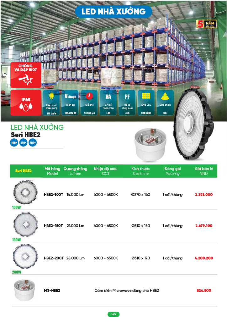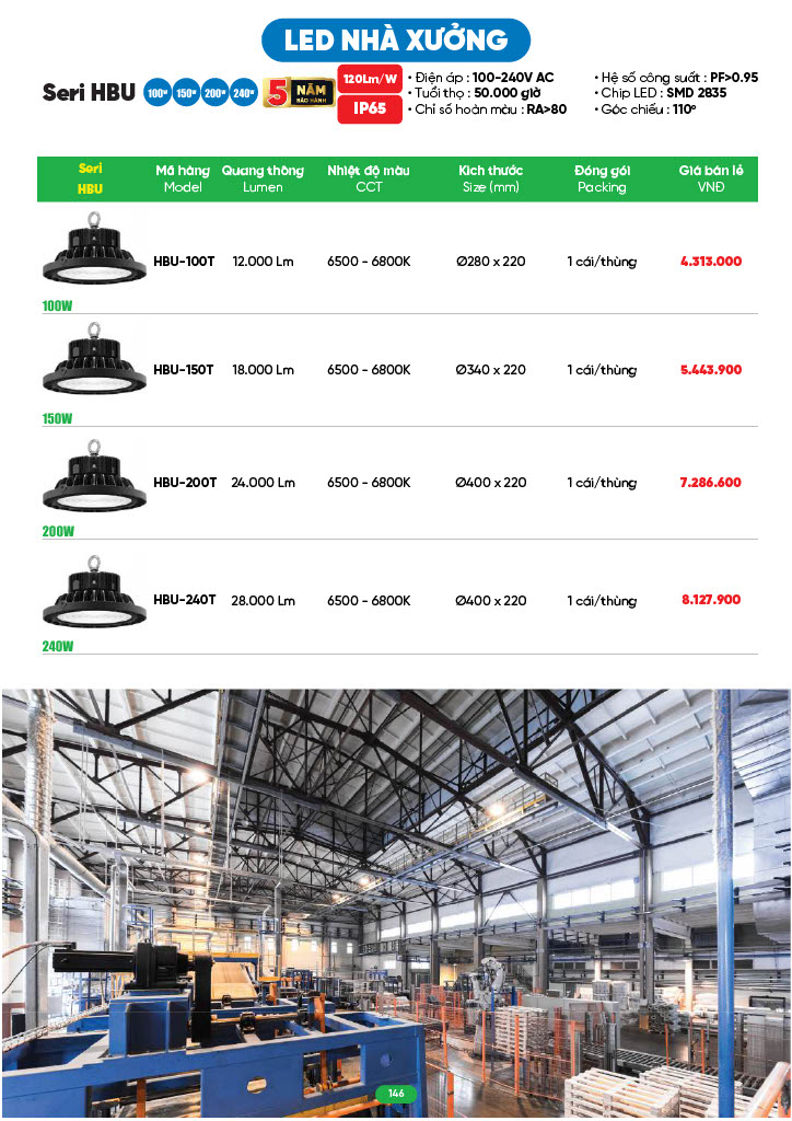 - Ứng dụng: đèn phù hợp lắp đặt tại nhà xưởng, kho bãi, dự án, công trình....